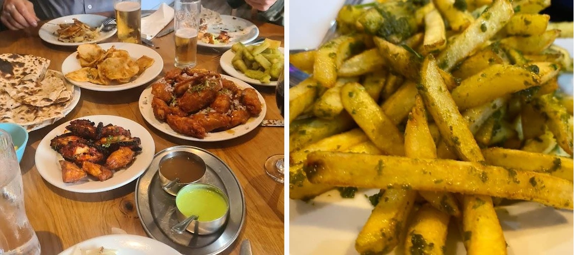 Great service and they have a good beer garden area with 6 seater cabins with heating and light and Tv. Very well looked after by the staff and they serve Indian food. The food from the starters to mains all cooked well and full of classic flavours and fresh. For starters we had Garlick Mogo, chicken pakora, tj special wings which were great with a crispy coating. Mains went for a lamb and chicken dish as well as a veg curry and rice and must say I will be looking to go again and this time do a full review with photos and videos.